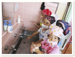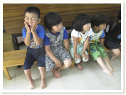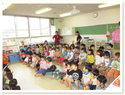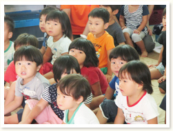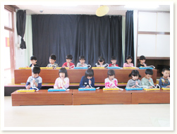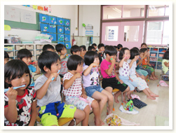 はぶらしの持ち方、磨き方、歯の話、 「歯はだいじ」としっかりお話を聞いていました。
