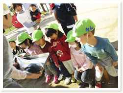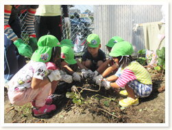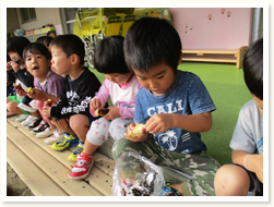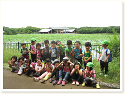 大泉緑地に遠足にいきました。 滑り台がたくさんくっついている遊具で 満足するまであそび、お弁当の後は、 宝探しをしましたグループで協力しあい 「ここかな?」「あっちにいってみよう」と、 森の中を走りまわっていました。
