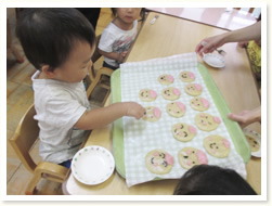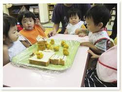 1歳児「ももんちゃん」 大好きなももんちゃんを ぱくぱくたべました。