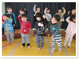 こぐまぐみのうたに合わせて、 みんなうたいおどってくれました。