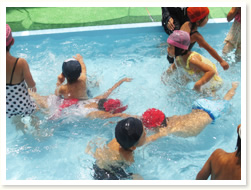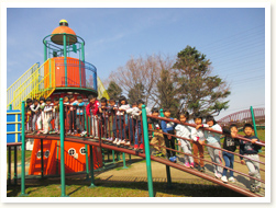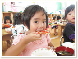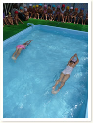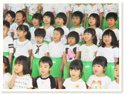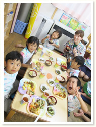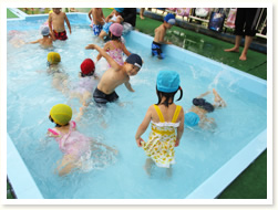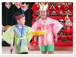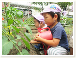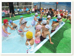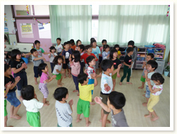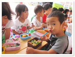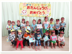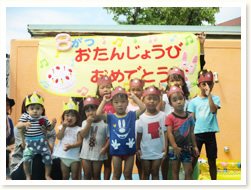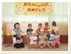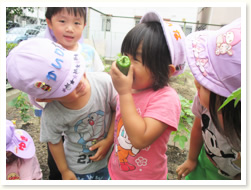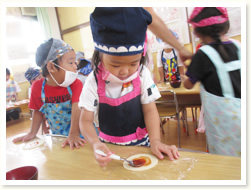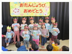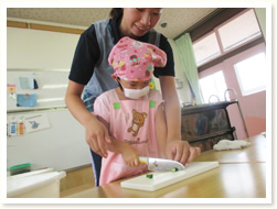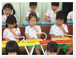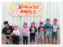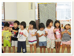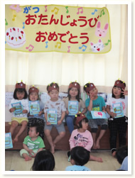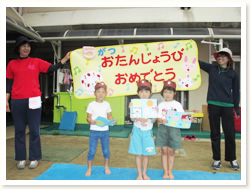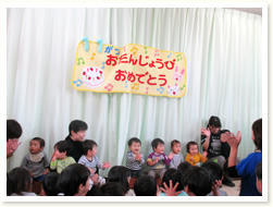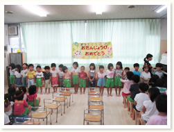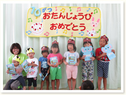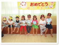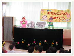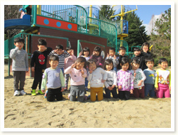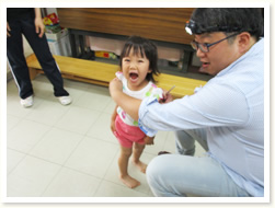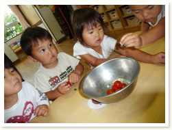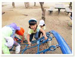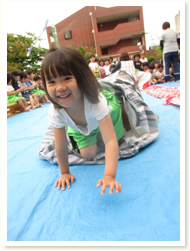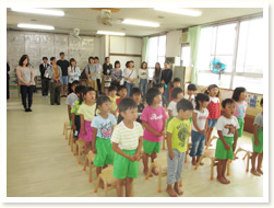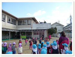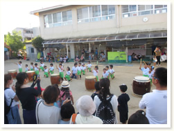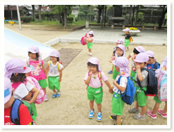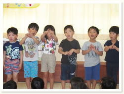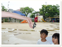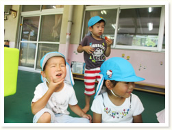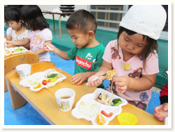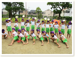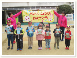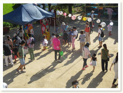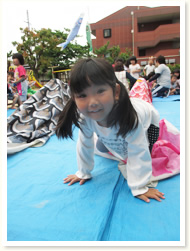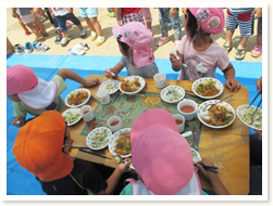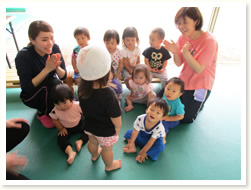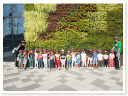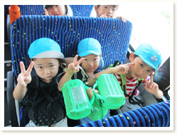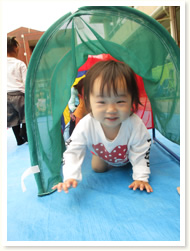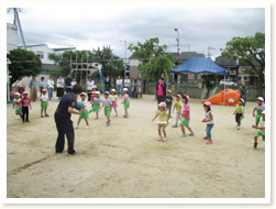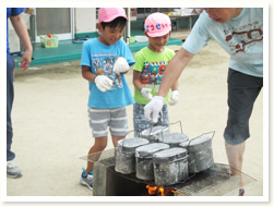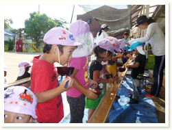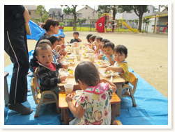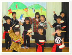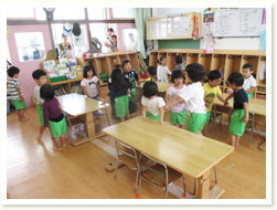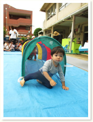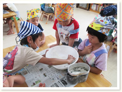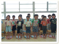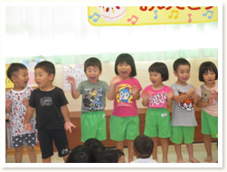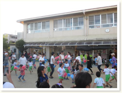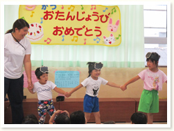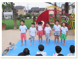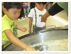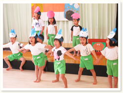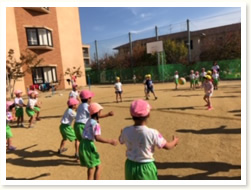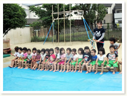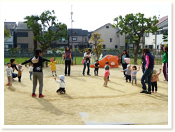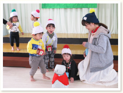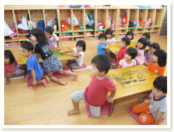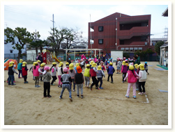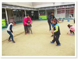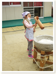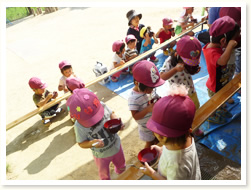 きりんぐみ(4歳児)が竹ぽっくりをして