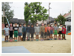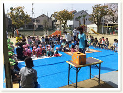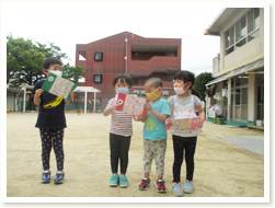 〈こどもの日のつどい〉 今年は園庭で、幼児クラスがこどもの日のつどいをしました。 それぞれが工夫して作ったこいのぼりをみんなの前で披露しました。 5歳児さんは♪「そらをとんだこいのぼり」をきれいな声で聞かせてくれました。