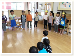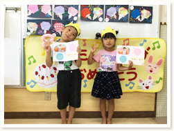3月11日に、ぞうぐみさんとのお別れ会をしました。 在園児さんは、手遊びや歌でお祝いしてくれ、 手作り帽子や写真たてのプレゼントもありました。 5歳児さんは就学先を発表して、きれいな歌声を聞かせてくれました。