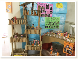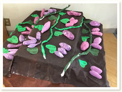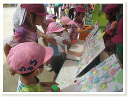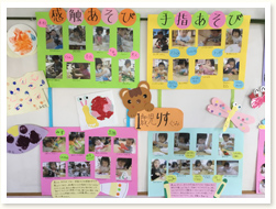 作品展を行いました。 乳児クラスは手指をたくさん使って、日々楽しんでいる様子や作品を飾りました。 幼児クラスは遠足の思い出や、大好きな絵本のお話を様々な材料を使って表現しました。