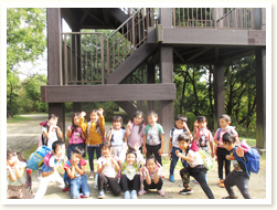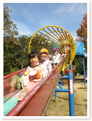 大型バスに乗って錦織公園に行きました。 沢山のドングリ、大きなすべり台に大喜びでした。 自然の中で食べるお弁当は、おいしさも増すようです。