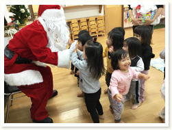 12月のお友だちお誕生日おめでとうございます! 鈴の音と共にサンタクロースもやってきて、プレゼントのおみやげに大喜びです。