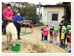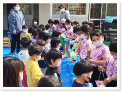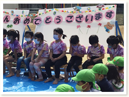 4月生まれのお友だち、お誕生日おめでとう! 「ひとつ大きくなったね」とかんむりと誕生日カードをもらって、にこにこ笑顔でした。 全員で集まることが今は難しいので、ぞう組(5歳児)が歌のプレゼントでお祝いしてくれました。 ♪やまびこごっこさーん ♪まねっこさーん と 「やまびこごっこ」をうたってくれ、じっと聞いていました。